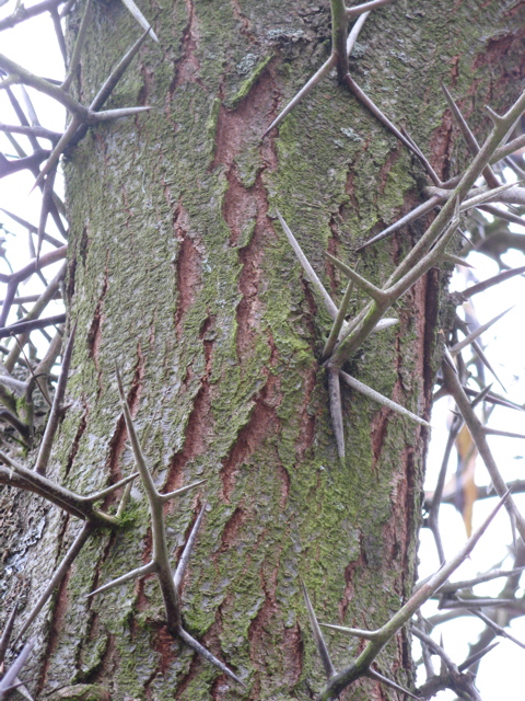 von den drei Einzeldornen an Stamm und Ästen.
